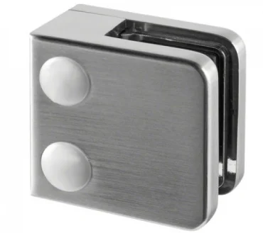 50 mm stort klämfäste för montering av utanpåliggande glas på plan yta. Löstagbar gängstång.